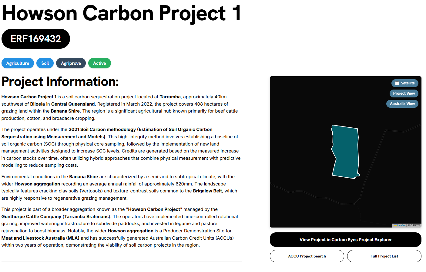 Howson Carbon Project showing one of the project details: Project Explorer | Project Info