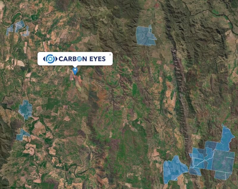 There are numerous soil carbon projects (blue) on surrounding farms via Project Explorer